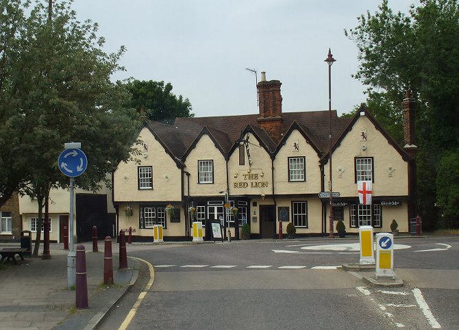 Getting back onto the westward dual carriageway was not so easy, but was accomplished without problem. After that it would have seened rude to miss out Stanstead Abbotts, so we pulled off the main road again to pass through there, passing the junction with the 350A route and the Red Lion.