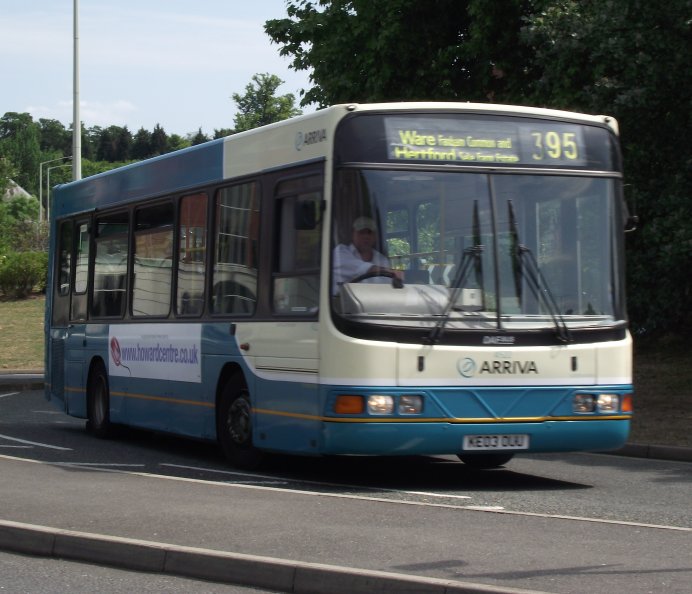 Turning out of the old spur onto the main road was not easy - buses were not meant to turn this way. But we made it (or rather, Peter Aves made it), and climbed up over the hill and down into Knebworth. Not long after that we were running into the weird landscape of Stevenage: factories, retail parks, dual carriageways, green spaces and a network of cycleways threading through it all. We found the bus station, and alighted while the crew took a break.