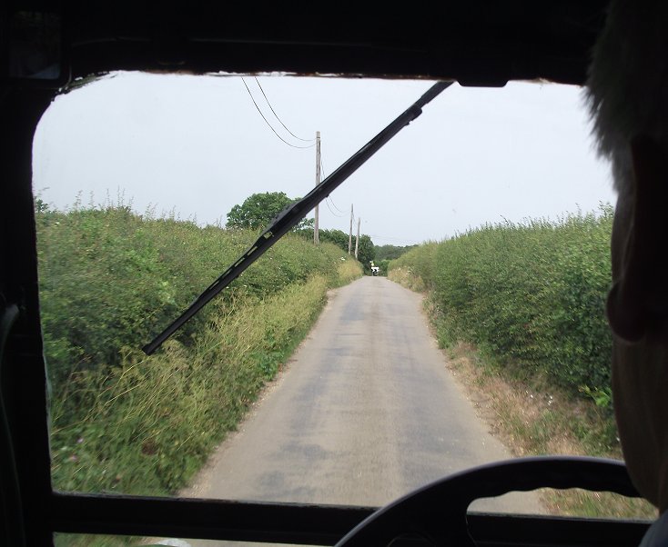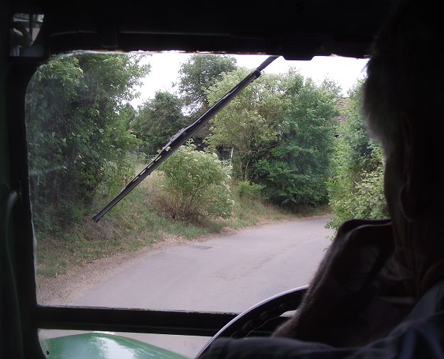 Then it was back onto the bus, and back along the narrow lane out of the village. We just hoped not to meet a crazt 4x4 driver round a blind bend. John made good use of the horn at the tightest bend. We turned down the long lane to the main road and pulled in to a drive entrance to let a car pass us. Nigel and I alighted and walked down the lane for some pictures of the bus coming down towards us.