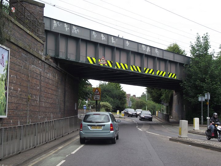 We headed north, under the 14ft 9in bridge here, and a little later the slightly higher (15ft0in) bridge at Stapleford. Soon we were at the Watton roundabout, and turned left to rejoin the old road into the village. We made our way up the street, past the Bull and the George and Daragon, to the mini-roundabout giving access to Station Road.