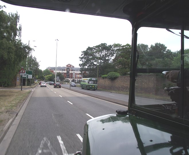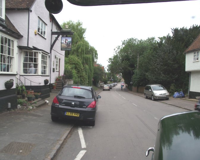 SWe headed back for Hertford: down into Watton, and south along the old road almost to the roundabout, then down the main road through Stapleford into Hertford. Heavy traffic delayed us through the town. Passing along the by-pass to the east end of town we met RF281, heading south on the 350. We turned the corner at the roundabout, and we were then treated to the proper route into the bus station, via the High Street and the east end of town.