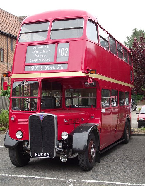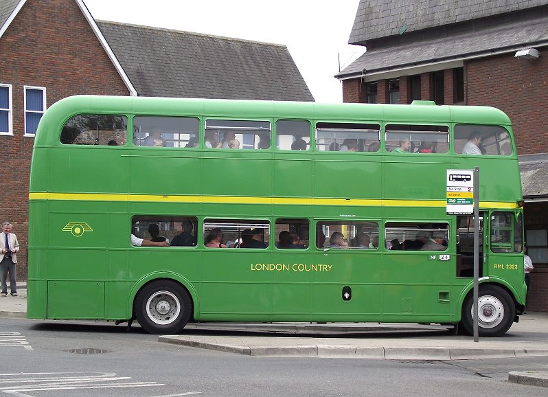 Then RT2083 departed with its permitted maxinmum load of eight, on a 715 to Wormley. Almost immediately RT3254 arrived with the previous 715 working, and pulled right round the bus station to unload clear of the congested stands. Then the RT was prpared for a short journey to Watton Station, with appropriate blinds and fare chart.