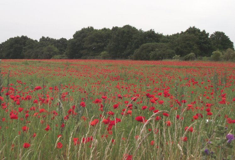 RT3254 ground up the steep bank to Watton Station. There we were asked to stay aboard while the bus reversed into a sideroad for a welcome break. Photographers descended. Opposite, across the hedge, was a fabulous field strewn with poppies: a real scene of the fifties.