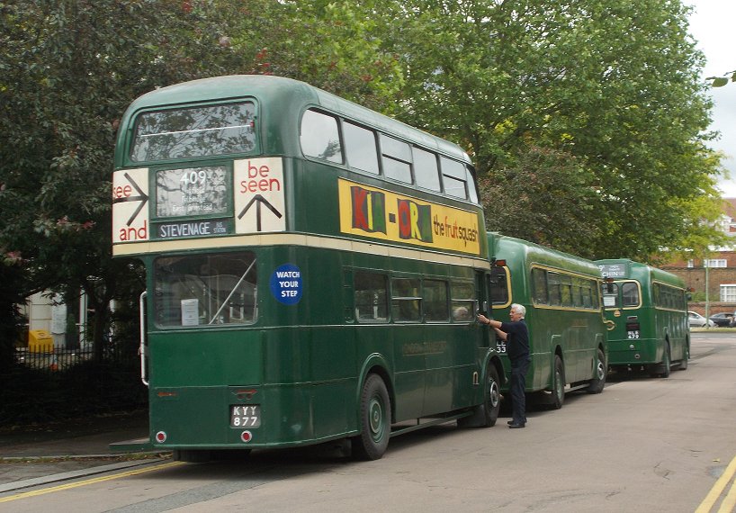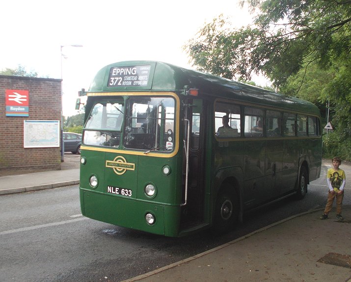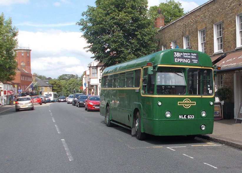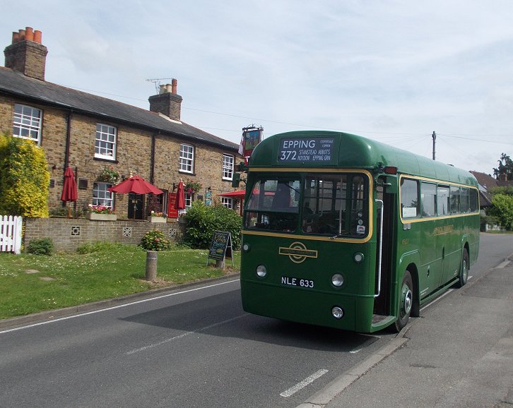Hertford Running DaysSaturday 7th, Sunday 8th June 2014Prepared by Ian Smith, 23rd June 2014.372/381A: Hertford to Coopersale Common: RF633I travelled from home to Hertford North by train: after a splendid run down the main line for two hours, covering well over two hundred miles, there was a very long wait at Stevenage for a connection. Most electric main-line trains were stopping at Peterborough or here while the new Canal Junction at Kings Cross was wired up, and the suburban services to Moorgate or Finsbury Park by either route were severely affected too. Eventually I climbed off the grubby Class 313 set at Hertford North. Presumably these will be sent to service us grateful recipients in the North, once the new franchise gets new trains, and the North's few decent trains are sent south.I descended to ground level, and crossed the road to the bus stop. There was an indicator of buses due. Nothing until a 724 in nearly half an hour. I set off to walk into Hertford town centre. A hundred metres down the road the previous 724 roared past. Thinking black thoughts I walked on into Hertford. Arriva's Cadet 4521 came the other way as I crossed the junction for the road to Bengeo. I walked through the town centre towards London Road, where we usually start these route recreation days. I was aware that I did not know what time we were meeting, although I suspected two o'clock. I spotted RF627, and went to meet Ken Eveleigh. He did not know the start time either. But after a couple of minutes the familiar green shapes of RT3148, RF633 and RF679 appeared, and folk began to gather for the club outing on RF633. Only RF633 would be needed for the afternoon: the other buses were going on elsewhere ready for the morrow.