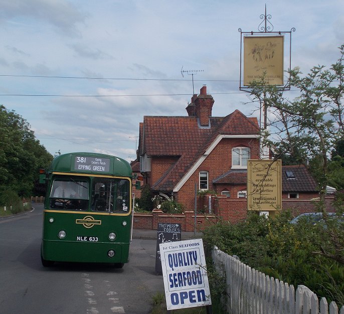 Hertford Running DaysSaturday 7th, Sunday 8th June 2014Prepared by Ian Smith, 29th June 2014.381/372: Coopersale Common and Toot Hill to Hertford: RF633381: Coopersale Common to Toot HillI had not realised that the 381, for part of its existence, did not terminate every time at Coopersale Common, but continued in a loop back round through Epping and on to Toot Hill. So the blinds were changed on RF633, this time to a 381 to Toot Hill.We reboarded, and went forward, under the Epping-Ongar Railway to meet the North Weald road. There we turned left to run into Epping. We met Townlinks' Dart SLF LX51FFW heading to Harlow from Ongar, then paused again on the High Street stop. We set off again, turning down towardfs Epping Station. This time it was Green Line-liveried RT3238 that was toiling up the hill with a 339 to Ongar. We continued down to the valley bottom, and ran eastwards, passing the Merry Fiddler before climbing up through Colliers Hatch to Toot Hill. At Toot Hill we located the turning point, just beyond the Green Man, and alighted while the bus made a turn using a side-road, with the direction of conductor Larkham. The bus tootled back past the pub to halt at the bus stop. The blinds were changed for the return journey as a 381 to St.Margarets Station.