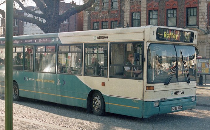 Down at Horsham Bus Station I saw Dart 3036 (ex DSL36) from Cranleigh. This had arrived on the two-hourly route 63 from Cranleigh, its usual run to judge by the route-dedication panels. I pondered that the Dennis Dart has probably done more than other design to keep British bus manufacturing afloat since its introduction in 1990. I wonder how long it will be before these start going into preservation. A few minutes later it was pausing in the Carfax on Horsham local route 98 to Roffey (Lambs Farm Road), a filler duty between its longer runs on the 63.