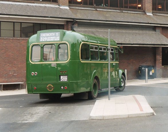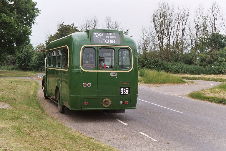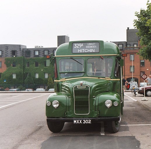 Hitchin Running DaySunday 1st June 2003Prepared by Ian Smith, 18th June 2003Part 2: Hertford to Hitchin on GS2: 329, 329AWe had ordered an early breakfast at the hotel, and by 0740 we were breakfasted and ready to go to collect the buses. There was not a great deal to do when we got there, except the usual checks and warming-up, and soon GS2 and GS62 were on the way in to Hertford Bus Station. There Alan Charman set about organising the places for trade stands.Colin Rivers arrived with RF679, and we went round to the bus park to prepare it with bollards and notices to keep cars out for the day. When we returned it was nearly time for the first departure of the morning in GS2, the 0840 to Knebworth (Tup End). Peter Aves set off with the select band of passengers who had turned up for this special trip, and picked me up on his way out of the bus station. (There are advantages associated with being part of the crew!). We passed through the very quiet west end of Hertford, and went under the bridge at Hertford North station. Today we did not turn left on the 388 route, but continued uphill to the Bramfield turnoff. Soon all trace of suburban Hertford was behind us and we were enjoying the country lanes and the long avenues of trees. GS country par excellence! At Bulls Green Peter stopped GS2 and rolled up a blind for the infrequent Bulls Green short workings - he has an encyclopaedic knowledge of all facets of GS operations. Several of us stretched our legs for a minute or two on the green, then we were off again through Datchworth Green to Woolmer Green, then down into Knebworth, where we squeezed under the East Coast Main Line to the station. Very shortly we were at Nup End, terminus of the 329. Like many bus termini, the key feature was not a traffic objective but a physical turning point, with somewhere to stand, in this case a traingular road junction with lay-by, just on the outskirts of the village. Here Peter changed the blinds again, and we became the first 329A for many years. After many photos had been taken we all reboarded, and squeezed through the lanes to Tower Lodge, where we joined the old Birch Brothers London-Rushden route for the main road run into Hitchin, through Langley and St Ippolytts. St Mary's Square in Hitchin was closed for car-parking today, and there was a scramble to remove the bollards as we approached. We were not the only buses there. RF366, with Jim Andress, was there to work the 304 to Whitwell, while Hemel Bus liveried SNB469, rustled up at short notice to cover another unavailable National, was working the 303 link to Stevenage. We were due a break before our next booked turn, but Peter wanted to recreate one of his October 1953 pictures in the town, so that was our next objective.. Part Three: Hitchin local servicesAll photos by Ian Smith. Click on any of them for a larger picture. |