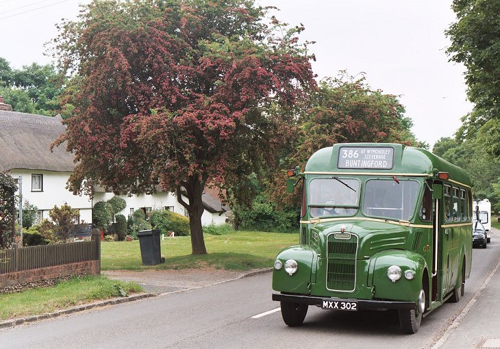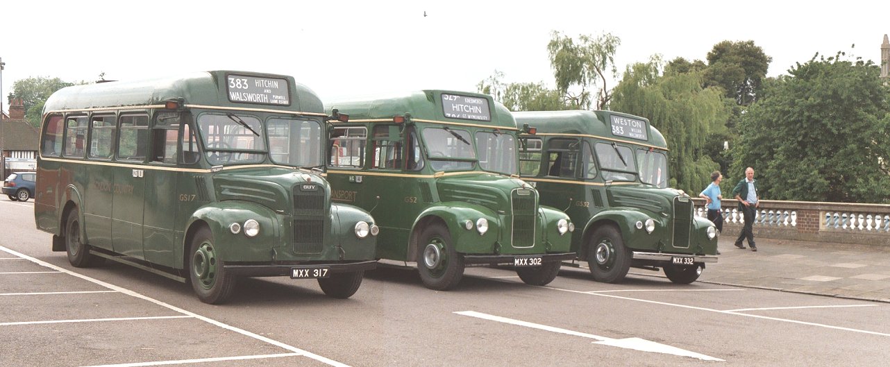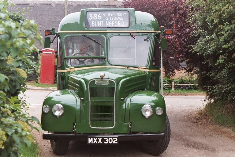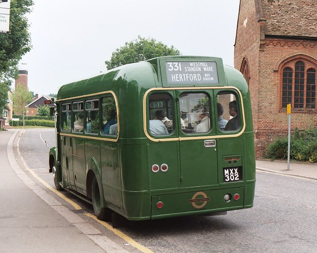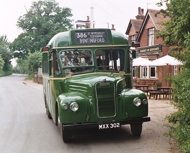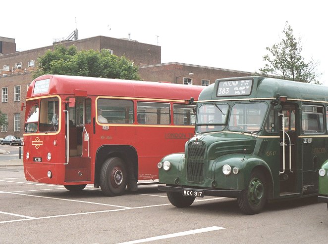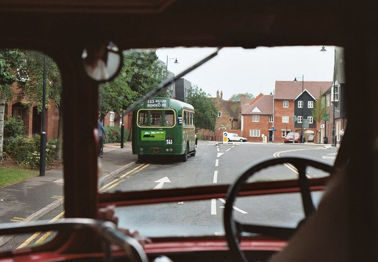 During our break at Hitchin we parked alongside GS32, with the two red RFs behind. After a little while GS17 came back from a trip to Weston and joined the other two to make a three-GS lineup. RF366 headed off to Stevenage along the 386 at 1500, with the prospect of an interesting 384 journey to Hertford beyond that. Meanwhile Eddie Knorn arrived with gleaming National SNB312 on the direct 303 route from Stevenage, and one of Arriva's Dart SLFs scurried past on their service 700, which seems to serve most of north Hertfordshire. Eddie was on a tight schedule and a minimal turn-round time - part of the price of reproducing more modern operations! The National was straight round onto the stand to reload. An earlier age of operations was shown by the RMC, which operated a trip out to Henlow Camp. More current operations were demonstrated as Sovereign 133 called at the stop en route to Luton, followed almost immediately by one of Jetlink's large Volvos (V22) on airport duty. 386: Hitchin to BuntingfordBut soon it was time for us to leave Hitchin on our 386 ride to Stevenage and Buntingford. With a full load we climbed the hill and rolled down the other side towards Great Wymondley. There we turned right, soon crossing the 303 route and also the main A602 to reach Titmore Green. We paused at the pub, then continued down past Todds Green and Fishers Green into old Stevenage.Running in to Stevenage we met another of Sovereign's Volvo / Wright Renowns, 129, heading for Luton via Hitchin. At Stevenage we found SNB469 resting between turns, in company with AN153, still in its First Rider livery of all-over cream, with fleet number 6460. The AN had spent much of the day on Stevenage local route 800, along with a Metro-Scania from Leicester (which I didn't see). AN153 pulled round onto the stop while we were there, and we followed it out of the bus station. But we turned north, to thread our way through the maze of dual carriageways towards Walkern. At Walkern we turned left, parting company with the 384 route, heading up the River Beane through the village and on towards Cromer. But before entering the village we turned sharp right onto the lane to Ardeley. We stopped in the village, and again many photos were taken before GS2 nosed round the corner into the lane to Cottered. This really was a narrow lane, with no hope of passing anything coming the other way. In places it ran between hedges, at others between raised field-berms. The narrow lanes took us up to Cottered, where we rejoined normal roads - with traffic. We paused briefly in pretty Cottered before travelling on towards Buntingford. We reached Buntingford, where a couple of passengers alighted, and rolled the blinds round to 331 for the journey to Hertford. We set off down the Roman road, soon being joined by the A10. We came off the main road into Puckeridge, and wiggled through to Standon Station before returning to the main road for the run to Wadesmill and Ware. We wriggled through the town, and round past the station to the level crossing. From there we motored west into Hertford, arriving just before 1730. RF406 followed us in on the last trip on the 333. RP21 was preparing to leave in the Epping direction. SNB312, stalwart of the 390/303 service during the day, was the last public departure, working back north on the 331 to Buntingford, and thence to Royston. GS1 came in for goodbyes, while RM1699, RMC1507 and GS62 were parked ready for departure. Once the traders had gone we loaded RF679 with the team materials (tables, chairs, sales material, bus blinds...) and headed round to the bus park to collect the bollards. It was my last ride of the day on GS2. GS62, GS2 and RF679 then headed off together for the journey south. I travelled south on RF679. GS62 and GS2 disappeared into the distance long before we reached the M25. Somewhere near Harlow we passed ex-London Central DEL1, now with Local-link. It was parked on a verge with blinds for the 201. We went on. The forecast storms hit with a vengeance as we went down the M25 towards the Dartford Bridge, complete with lightning and torrential rain. But it cleared as we headed down into Kent, and we were treated to a glorious sunset before we arrived home.