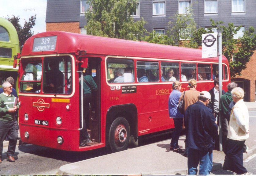 Thanks too to all the organisers of Country Bus Rallies for putting on some 160+ journeys, and to the preservers, owners, drivers and conductors who gave their time to make it possible. Especial thanks to Peter Gomm for controlling Hertford Bus Station: with twenty buses an hour, (140 in total) - not counting the ordinary service buses, he kept things moving, and safe. PostscriptThese two got missed during the telling of the story somewhere: RF486, seen here on a 329 for Knebworth in the middle of the afternoon, and RF28 on a 384A service to Great Munden. That's Peter the Controller in the green top by the front of RF486.Buses in service: I didn't see them all this time: I'm sorry if I missed you!