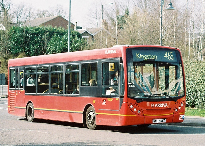 At Leatherhead Station we alighted to take pictures. The Sunday morning peace was shaterred as Arriva Enviro-Dart 3977 rushed up the approach, twirled round and rushed out again on the 465 to Kingston, not pausing at all.