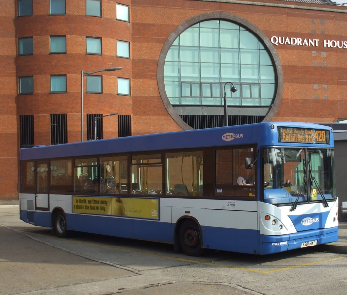 The handfull of passengers boarded RF429 and we were away, round onto the Reigate road through Redhill centre, and along the switchback road to the centre of Reigate. There we turned north, to head for Reigate Station. We crossed the level crossing and pulled up at the stop for a quick photo, before climbing northwards up the face of the North Downs. We crossed the escarpment and passed over the busy M25, and began the gentle descent through Lower Kingswood, and on down the long dual carriageway past Kingswood.