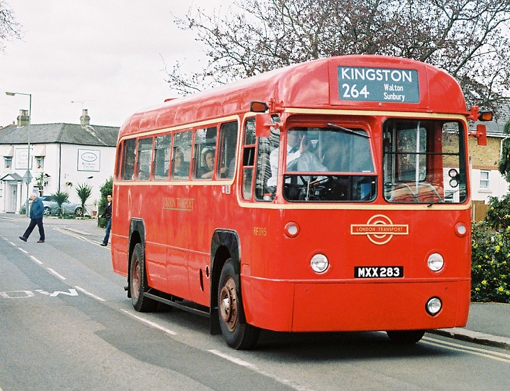 I watched the bus depart and crossed the road - just in time, as RF486 came round the corner on the return working to Esher!