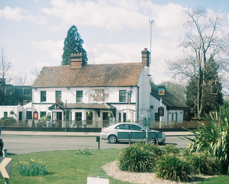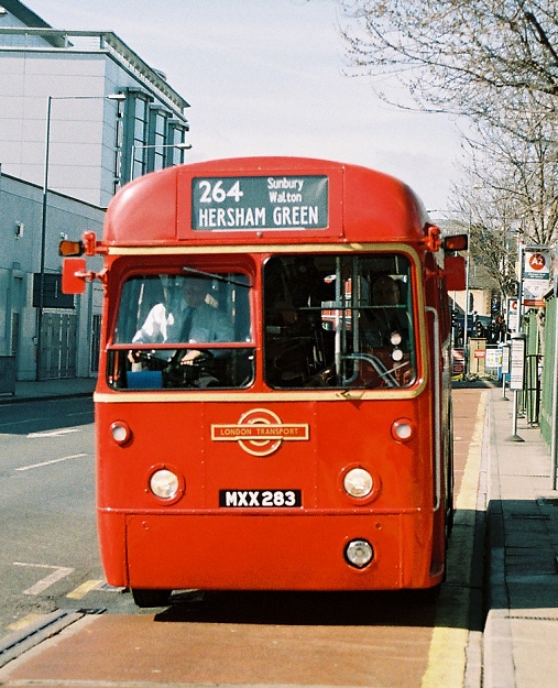 We squeezed past and headed for Hersham, turning off the High Street into Bowes Road and then Rydens Road to reach Hersham Station. We continued past the Barley Mow, and turned the corner to the stop on Hersham Green. RF395 went off to turn.