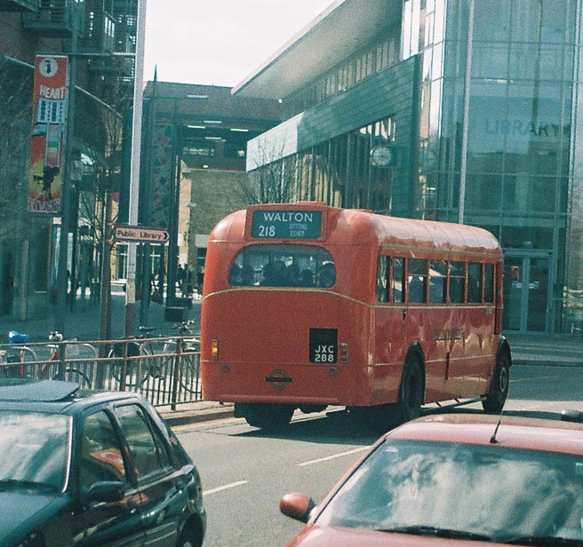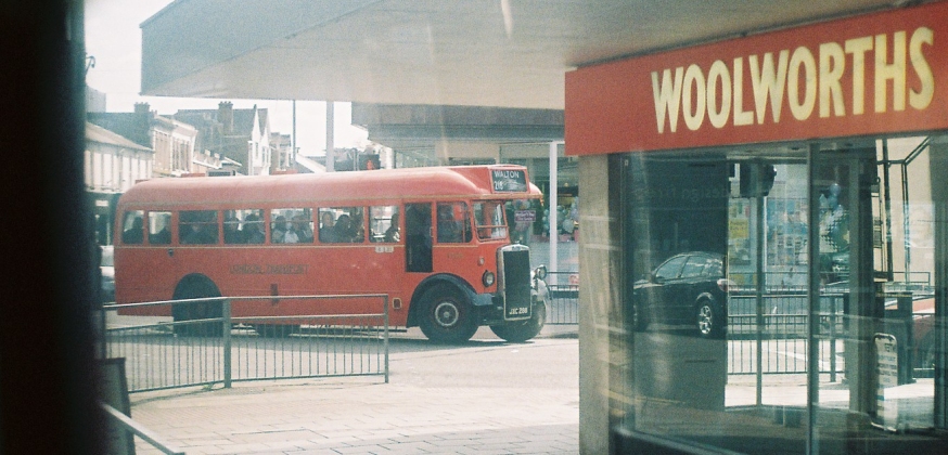 We negotiated a way into the centre of Walton. Over the driver's shoulder I spotted TD95, wearing 218 to Walton blinds. It turned left, past another relic of the past: Woolworths!