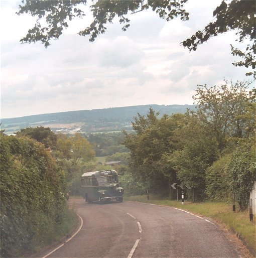 The RF left the GS behind at the roundabout at the foot of Star Hill, and dug into the climb. Star Hill assaults the North Downs escarpment frontally, and the 471 and 431 routes came this way on their forays to and from Dunton Green garage and/or Sevenoaks, while the 402 and 704 in the old days kept to the main road up Polhill, which sneaked up the side of the corner with the Darent Valley. (I used to prefer Star Hill on my bicycle - steeper but much shorter! - but I never saw a bus on it in my teen years.) Richard went down the gears with RF633, and we ground up the hill, enjoying the views. After a while GS1 came creeping up behind through the blue cloud.