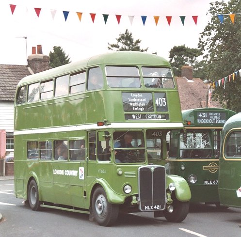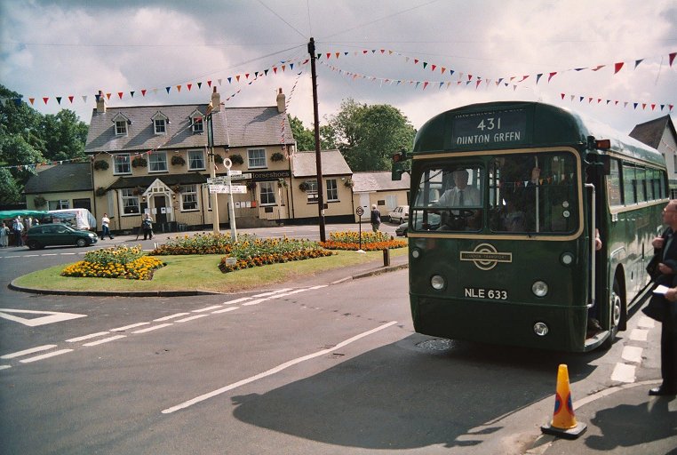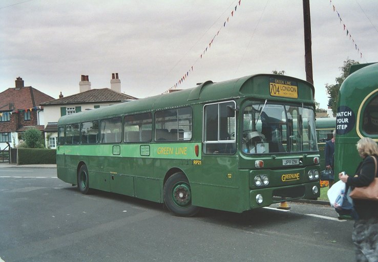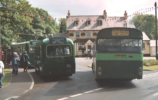 I sat on GS1 for a few minutes, chatting, then made the rounds of the assembled buses as they passed through. GS62 parked next to the triangle. RT3148 stopped on the pub forecourt. RP21 came up and parked behind GS62, ready for a trip back to New Cross on the 704.