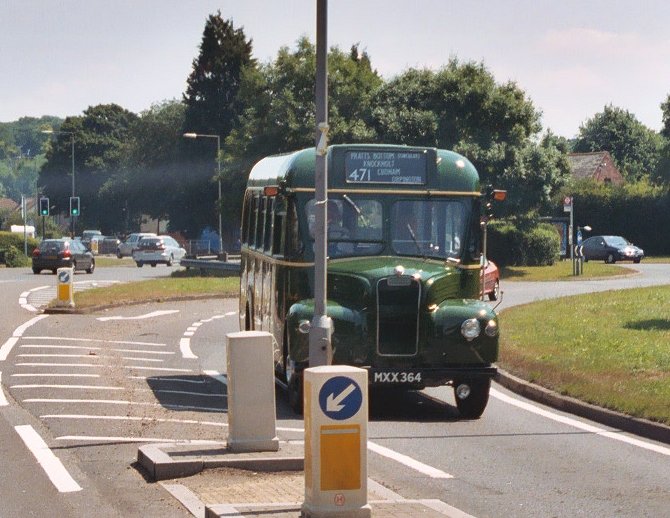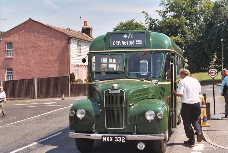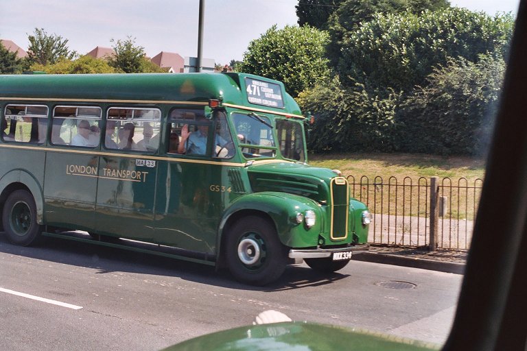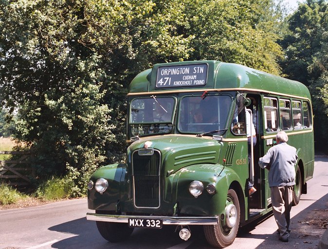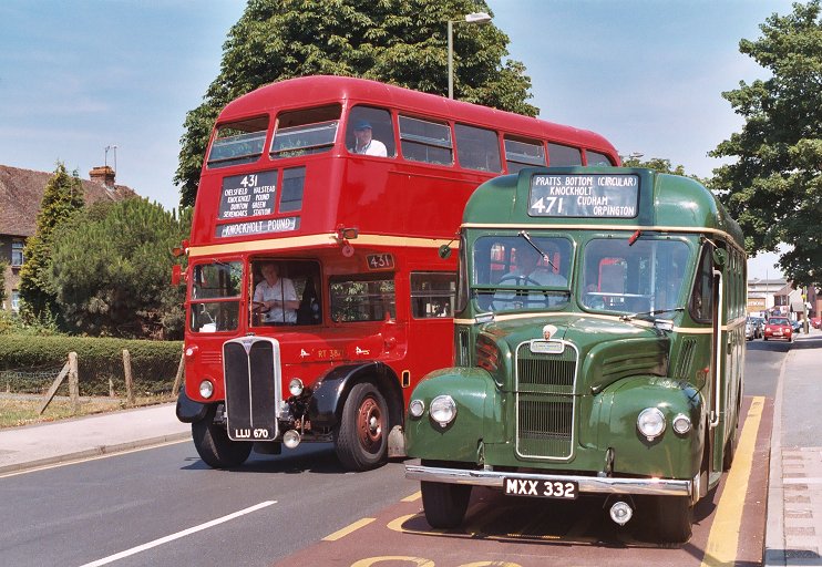 But back to the fifties! GS32 paused at The Queens Head, and RT3871 took the opportunity to pull round and overtake. We turned left at the roundabout and headed for Pratts Bottom, where we met London's Transport Museum's GS64 coming the other way in the sunshine.