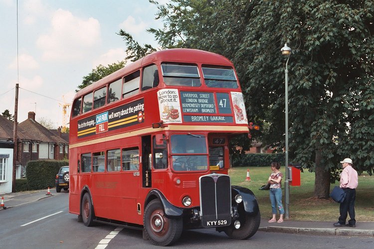 Perhaps it was the effect of the beer, or perhaps I was just tired, but I have no clear recollection of how I got from The Three Horseshoes to Bowens Yard. I THINK that I climbed aboard RT3148 for the short journey, after its return from Orpington on the 471. Anyway, both I and RT3148 reached the yard.