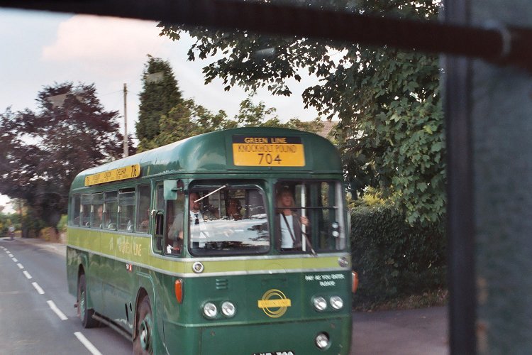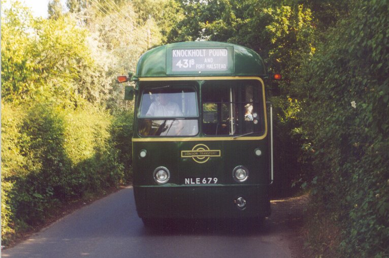 We loaded up at the Three Horseshoes, and set off on the short journey. We were immediately held up by a traffic jam as cars squeezed into gaps left by parked cars to allow a convoy of three GSs up to the Pound: GS60 was leading GS15 and then GS1. They passed, and we went on our way, easing right into Halstead village. I was telling our passengers about the photographic restrictions on our visit to the gate of Fort Halstead, and was caught by surprise when we were met by RF48 coming the other way through Halstead on a 704 working.