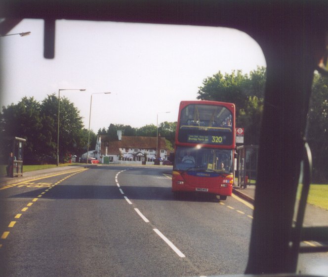 Passing through Leaves Green we met two modern equivalents of the erstwhile 410 route. Metrobus' Dart 213 was working the hourly service from Westerham (and Chartwell), while their Scania Omnidekka 487 was working the 320 from Biggin Hill Valley, a more useful version of the old 410 short-workings to Biggin Hill, which did not venture down into the valley until later years. But it would have been nicer to meet an RLH! (or even a green RML - but we'll have to wait until October for the Godstone RML day!)