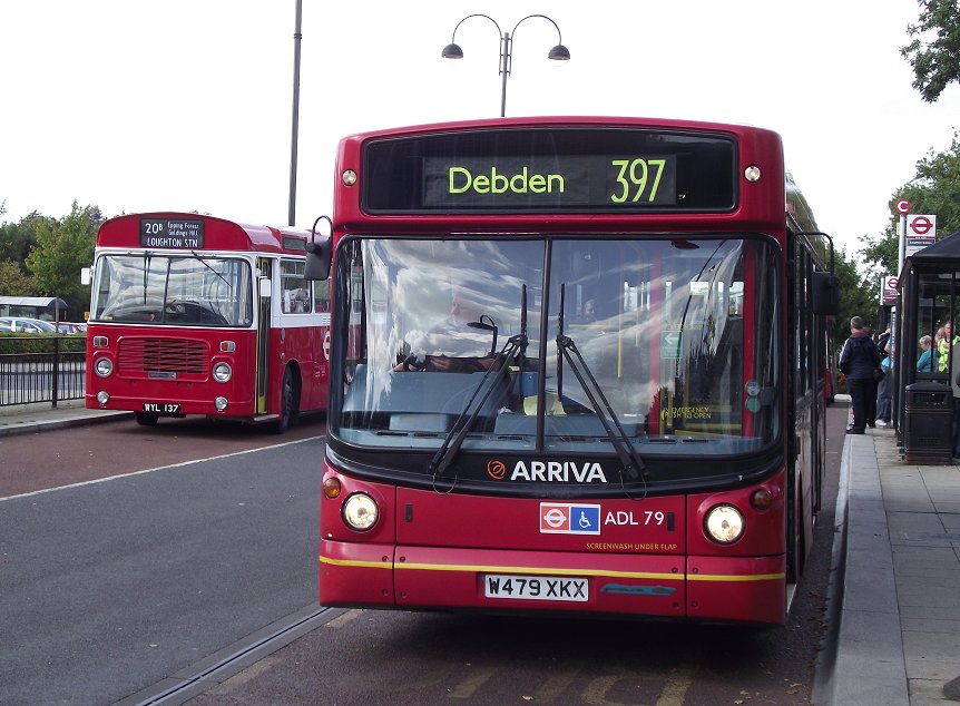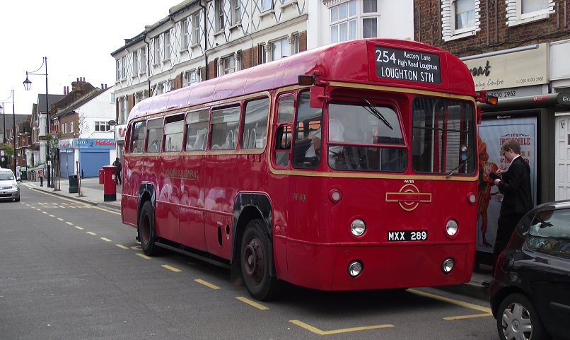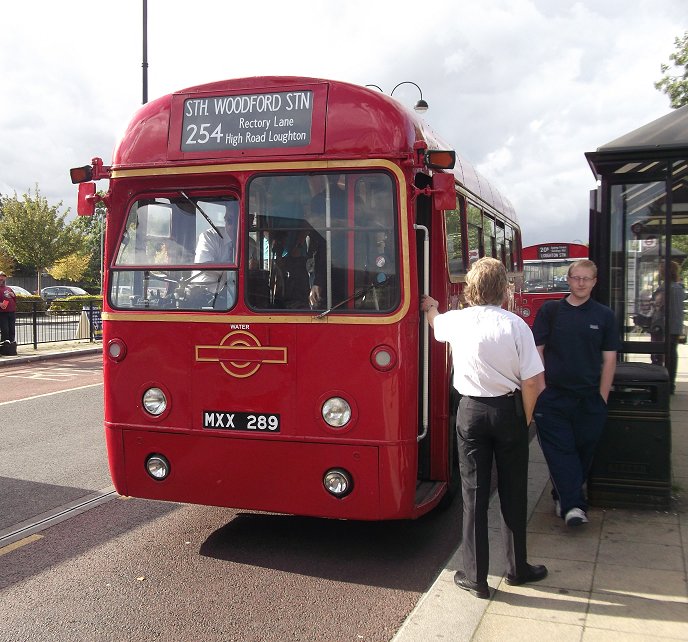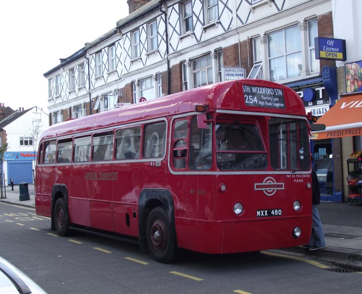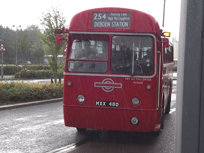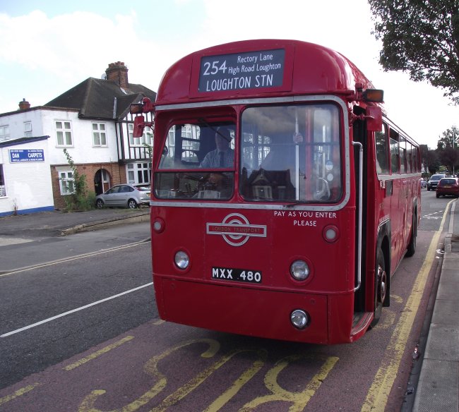 Loughton Classic Bus Running DaySunday 11th September 2011Prepared by Ian Smith, 22nd September 2011254: Loughton Stn to South Woodford Station: RF503Service buses continued to call while I waited for the Rf to come round onto the stand: ADL79 passed through heading for Debden, as did DLA352.Also heading for Debden Station was RF503, on the first loop of the 254 that would bring it back to Loughton Station. I was kindly offered the seat behind the driver, so that I could look forward over his shoulder. Turning the RFs at the front of the station is never easy -it needs a clear approach to turn in one go. We turned right at the top of the bus station, into Alderton Hill, then right again under the railway bridge in Roding Road, and down to the junction at the shops. We turned left this time, along Oakwood Hill, parallel with the Central Line along to Debden Station, where we turned left. We headed north-west up through the middle of Debden, up Chigwell Lane, and on up Rectory Lane. It was suburban and bland. We emerged at the sites of the two Loughton bus garages, the elder now a Homebase store and the other totally disappeared. There we turned left, up Church Hill into Loughton, where we met another ex-Docklands Buses ED on the 167. We returned to Loughton Station, and continued on the southern leg of the journey to South Woodford. It started the same way as the Debden loop: out along Alderton Hill, and down Roding Lane under the railway. But at the junction with Oakwood Hill we turned right. The trip south-west, parallel with the Central Line, was unexciting and curiously monotonous. I presume all the nice suburban houses were built in the same period in the 1930s, to accompany the railway lines. The 254 just served to link them to the succession of stations along the old LNER suburban railway, which became the London Transport Central Line in the late 1940s. I had hoped that the RF would turn up into Buckhurst Hill Station, but apparently this was not on today's permitted list. We continued south-westwards along the side of the ridge, under the Hainault loop of the tube and past Roding Valley Station, then Woodford Station. ADL76 made an appearance on the W14 as we crossed Broadmead Road. We negotiated the roundabout beneath the concrete spaghetti of the North Circular Road /M11 junction, and escaped along Chigwell Road. A right turn up George Lane took us to the terminus at South Woodford Station. We set off on the return trip, round the loop to get back into George Street facing the other way, then left along Chigwell Road to the big roundabout. There ADL981 went round ahead of us on the W14. We exited on the other side of the complex, along Chigwell Road, and made the tight turn into Maybank Road. A right fork onto Gordon Road took us up to St.Barnabas Road, where we turned right for the long climb up onto the ridge. We paused for a picture at the bus stop by Woodford Station, then breasted the rise and rolled along to Buckhurst Hill Station (almost), and on towards Loughton, eventually turning up Roding Lane to reach the bus station.