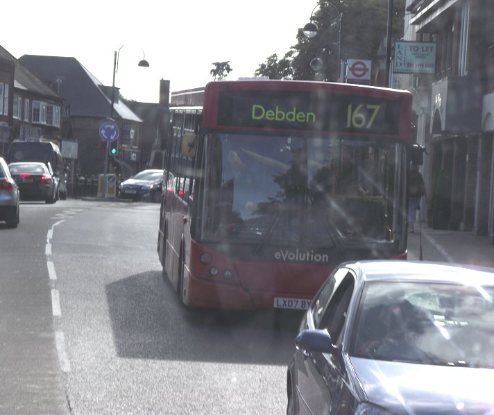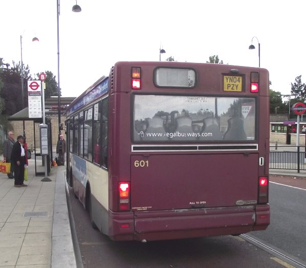 254: Loughton Stn to South Woodford Station: RF401At Loughton Station I expected to join /BL49 for a last run to Epping and back, but it seemed that it was not running. What I did not expect was that RF401 should arrive from the Debden loop with the next 254 to South Woodford. It should have gone by now. So I joined it.We were quickly away, round into Roding Lane and then south past Buckhurst Hill Station (not calling), and on down to Woodford Station, where we had a quick photo-stop at the southbound stop. Once again Broadmead Road provided passing interest, this time VLA140 heading for Barkingside on the 275. We negotiated our way through to South Woodford Station, where we stood for a few minutes. Then it was back to Loughton Station. We arrived behind Regal Busways' Dart SLF601, which was on their route 250 (Debden Broadway - Waltham Cross) The threatened shower arrived with some ferocity. Through it came Arriva's PDL91 on a 397 to Debden, and then RF503, arriving from a last trip round the Debden loop. Now it was time to wait for the evening trip on RT3062, which fortunately had been brought forward an hour from 7pm to 6pm... Part 5: 167A to Abridge and back.All photos by Ian Smith. Click on any of them for a larger picture.