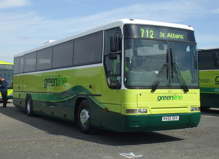 Arriva the Shires Plaxtons 4047-4056, 4064At the same time as Arriva took DAFs for Maidstone & District it bought an identical batch of ten Plaxton Premiere 320s for Luton & District, which was Arriva the Shires when they were delivered in November 1997. They were for Arriva's prestige airport route 757 (London (Victoria) - Luton Airport - Luton). The ten stayed with the 757 for two and a half years, then ten newer Plaxtons (see below) took over the prestige run and three of the Plaxtons (4047-4049) were cascaded onto Hemel Hempstead's commuter 758.Two (4055 and 4056) went to Southend for their Green Line duties. The latter two moved on again in spring 2002 to Arriva Kent & Sussex for the Maidstone run, where they became 2911 and 2912. In 2005 they moved back north, but to Stevenage for the 797, regaining their AtS numbers. Another four (4050-4053)were transferred from Luton-Dunstable to Hemel Hempstead in January 2006, after a batch of Alizees (4065-4069) arrived at Luton. The other one, 4054, stayed at Luton as a spare and for contract work. A further similar coach was acquired in November 2004 from Arriva Fox County (although it had a long history of other operators since new seven years previously). 4064 was used as a floating spare around the system, wherever needed. 4055 was going about its business on the 797 in Stevenage early one Sunday morning in June 2006. 4056 was in a queue of Green Line / Easyjet coaches loading up opposite Victoria Coach Station for a journey northwards in January 2008, ahead of Alizee 4059.4055 joined other Green Line coaches at Wisley Airfield for Cobham's celebration of 80 years of Green Line in April 2010. It now wears a revised livery, with a bow-wave over the front wheel.This batch lasted with Arriva the Shires until 2011-12, for the most part (4056 went to New Enterprise in 2009, 4052 was written off after an accident in 2011)