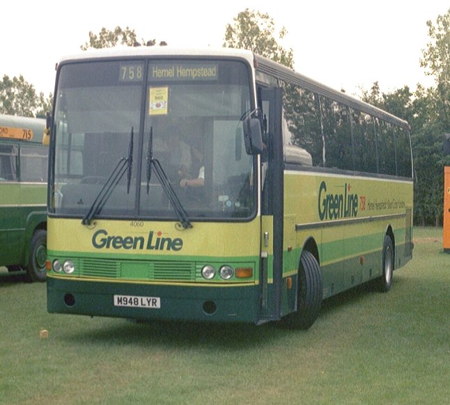 Arriva the Shires Alizees 4057-4061, 4063Grey-Green, part of the Cowie/Arriva empire, had its own coaching fleet, including some DAFs with Van Hool Alizee bodywork, dating from spring 1995. Two were transferred to Arriva Cymru in April 1998. In August 1998 another two were transferred to Arriva the Shires for Green Line work, followed by three more in October and a sixth in April 1999. They went to Hemel Hempstead, where they donned Green Line livery with discrete 758 branding for the commuter 758.Arriva the Shires' 4060 visited Showbus at Duxford in September 2005, as part of a Green Line 75 celebration. For some reason it was missing its Van Hool badge from the front.4061 passes Victoria Station as it nears the end of its journey from Hemel Hempstead ready for the evening homeward surge in October 2005.The Van Hools lasted a relatively long time on front-line Green Line work. But by 2009 they were relatively long in the tooth, and once the big six-wheeler Acrons arrived on the Luton run these older coaches were pensioned off. Some went to other Arriva enterprises (4058,4059 to New Enterprise, 4057,4063 to Arriva Scotland West), while 4060 and 4061 became dedicated trainers. 4060 spent some time training in Green Line livery, which allowed it to be used as a spare when necessary. It was repainted in late 2010 in white with a dark blue skirt, for training and/or railway replacement work, but was scrapped in early 2011. 4061 went into training livery of white with grey skirt in 2009, and lasted until late 2011.