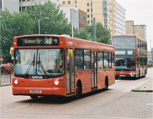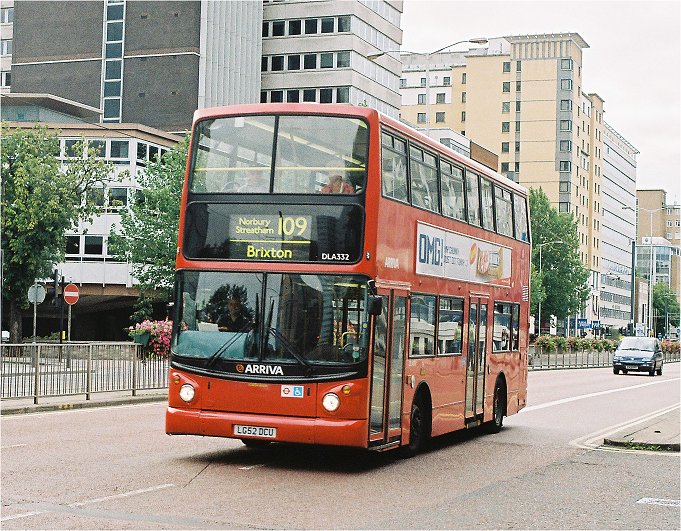 Demonstrating the slightly more restrained rear end styling of the previous generation of double-deckers was Arriva's nine-year old DLA187, working route 60, while sister DLA332 demonstrated the equally restrained front end styling on route 109.