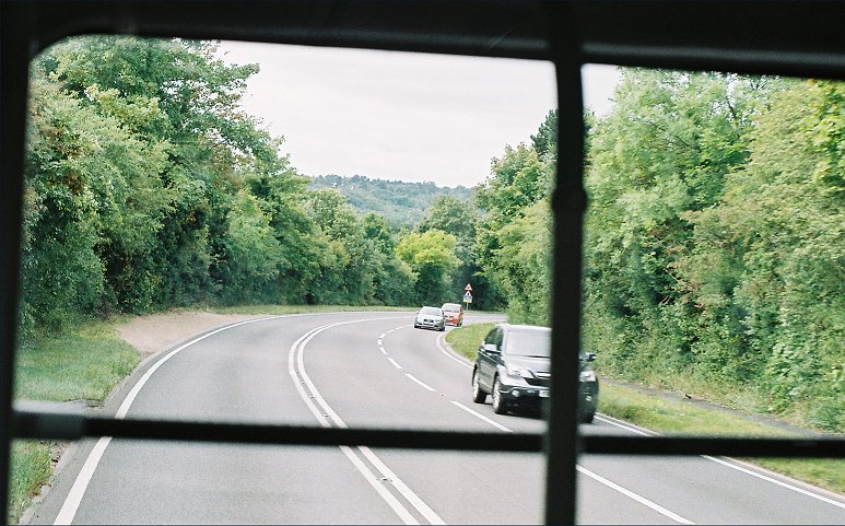 At Burford Bridge we again took the Mickleham Road, and climbed along the side of Box Hill. In Mickleham we met P3 - but fortunately it had stopped at a wider part of the street for us to pass.