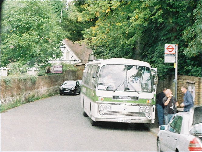 Beyond the village we passed through the woods, and I rang the bell for a stop. This raised the question: was it done on Green Lines for passengers to ring the push buttons for a stop, or should one ask the conductor to do it for one? Either way, we paused at the Juniper Hill stop for photos.