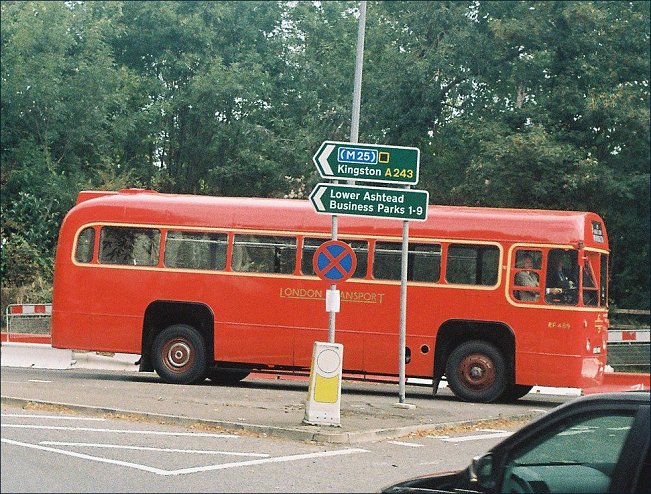 RF28 turned in, to visit the stop on the site, where I alighted. The Green Line coach was continuing on to Epsom, but I had a date with RF429, where I was required as navigator..