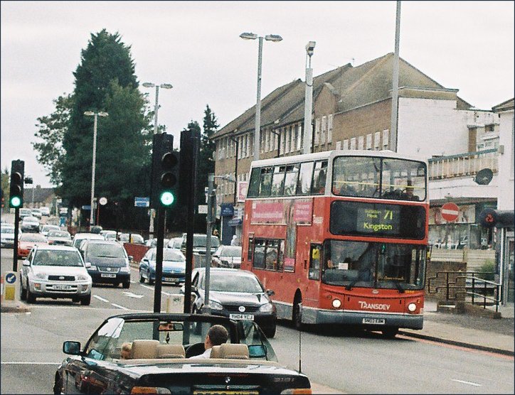 The STL was started up with the aid of a starter pack, and we pulled out - NOT stopping at the dolly stop! We turned left from Randall's Road onto the Kingston Road, and headed north. Kingston Road is nowadays bisected by the M25, so we had a diversion along Oxshott Road to cross the motorway, before jinking right and left to regain the Kingston Road.