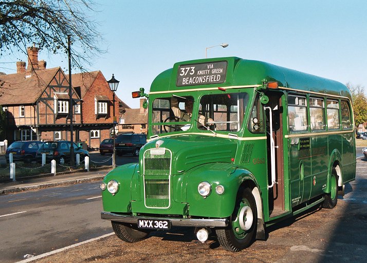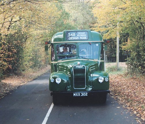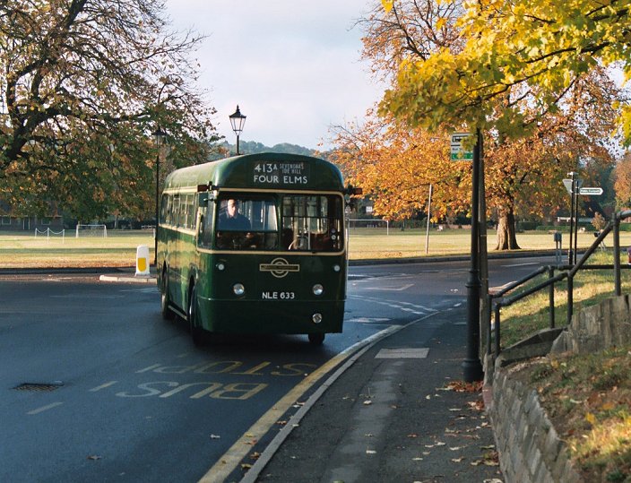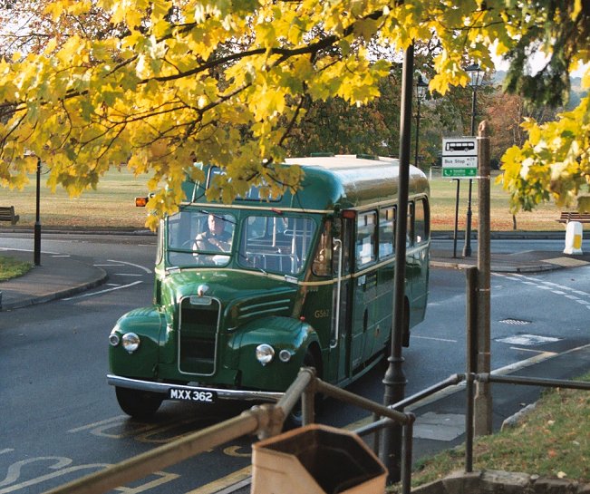 Sunday morning at Godstone Green was an autumn delight. The sun shone, the leaves glowed gold on the trees. Colin Rivers and I waited outside the pub for our buses to arrive. Suddenly a GS popped round the corner, taking us by surprise. It was Alan Charman in GS62. A moment or two later RF 633 came round too, and pulled up behind the GS. The blinds in the RF needed to be swapped for the Amersham set that Colin was carrying, so the ladder came out and the deed was done.