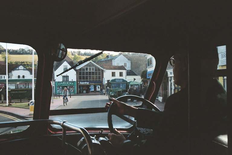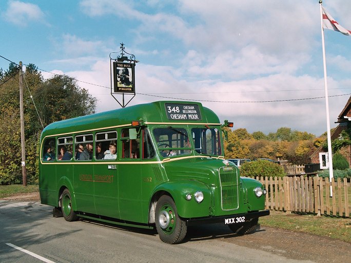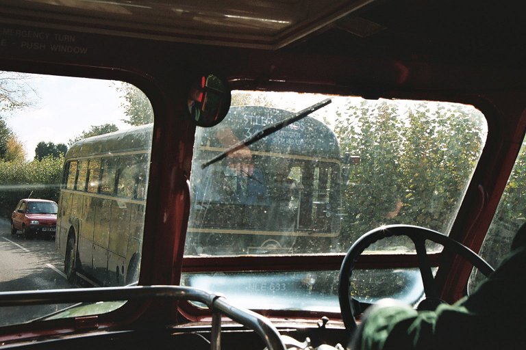 We continued into Bellingdon, one of the short-working points, and paused outside the Bull for lots of photos. A couple of passengers alighted, in order to catch the expected RF up to St.Leonards, the alternative 348 terminus. We met it a little way down the road, on a bend beside atall hedge. It was a tight squeeze to get the RF past.