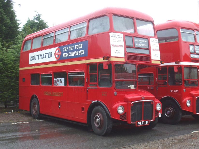 I went on down to the visiting buses' corner. RM8 was there, looking good, as ever. Next to it was RM1033 in the later white band and bullseye livery of London Transport.