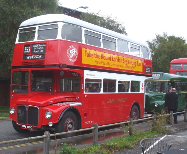Out on the stance stood two Routemasters, ready for long return trips on the 353: RM2116, the ex-Seven Kings show-bus,