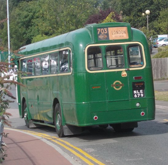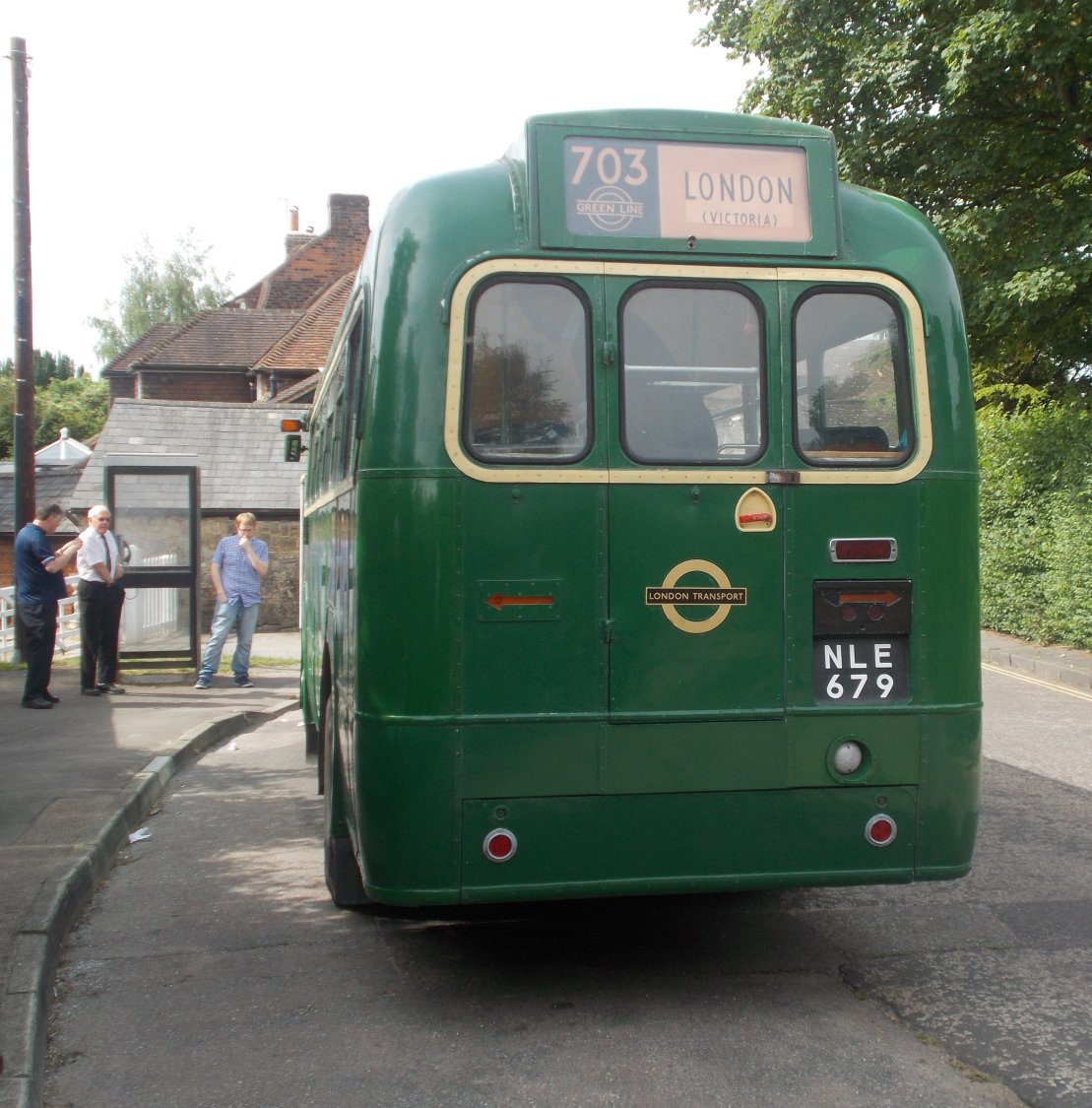 Route 703 RecreationSaturday 1st August 2015Prepared by Ian Smith, 5th August 2015.Borough Green & WrothamI started my journeys of the day on the 126 to Bromley South. These days this is a Metrobus route, operated mainly with EnviroDarts, such as 743, which duly dropped me half-way down Bromley High Street. I say "mainly" because the previous afternoon I had seen a double-decker waiting on the terminal stand. - and there was another this morning: EnviroTrident E210 was on the stand, with the electrically operated blind busy scrolling round to find Eltham High Street. The instant it was up the bus was away, pulling away round the corner onto the High Street. Good to see double-deckers on the 126 once more, after more than forty years of overcrowded single deckers.I caught a train from Bromley South to Borough Green & Wrotham: a comfortable enough journey, if unexciting. A small band of bus enthusiasts alighted at the nice little country station, and walked up the bank to the bus stop. It had not been the last train for the connection, so we had about forty minutes to wait for the RF. They were not uneventful. Almost immediately a 308 appeared, heading for Sevenoaks. (Is this actually a transport connection?) It was powered by 10.8m EnviroDart 3995, looking smart in clean Arriva interurban livery. A few minutes later an all-white bus appeared. This was Autocar's MAN AE56UTJ, working a modern remnant of the old Gravesend-Brighton 122 route. This is the truncated 222: Borough Green to Tonbridge. It pulled up at the foot of the ramp for a twenty minute layover. Then another 308 came in, 3985 working from Sevenoaks towards Bluewater. I went up onto the bridge to wait for the RF to appear. I was awakened from a reverie by a shout from behind, as RF679 pulled round onto the station approach from the other direction! The little bus (little by comparison with the 36 foot monsters that had been in and out during the previous forty minutes) twirled round on the station forecourt, and came back up to the stop. We waited time until 1020, then headed for Wrotham, trundling along a green tunnel to reach the little village. We turned up into the village centre, and twisted our way up into the village centre. We turned left up Old London Road (now a dead end), past the church, and onto The Pilgrim's Way. We went up to the top to turn, then came down to layover near the toilets. There we waited time - plus a bit, to wait for one of our number to arrive - before setting off on the trek across London..