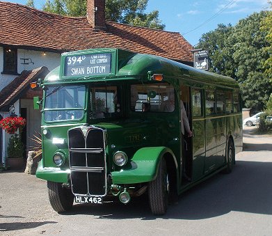 394: Great Missenden Station to Swan Bottom: T792The return journey was just as far as Swan Bottom. At the crossroads there we went straight ahead, up to the Old Swan pub, where we had permission to turn. Permission was one thing. Space was another. RF679 was already standing in the obvious place, and the car park was quite full. A seventeen-point turn in the entrance to the carpark was accomplished, followed by a round of applause for the driver!