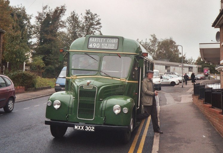 With everyone gathered back on board, and the blinds reset for the return journey, we returned down the hill through the suburbia of Hartley, and down to Longfield Station. There we met RF633, apparently undecided whether it was coming or going, due to blind-creep. It was actually heading to Meopham Green on the 489A. We stopped at the station, a seventies-style brick cuboid affair.