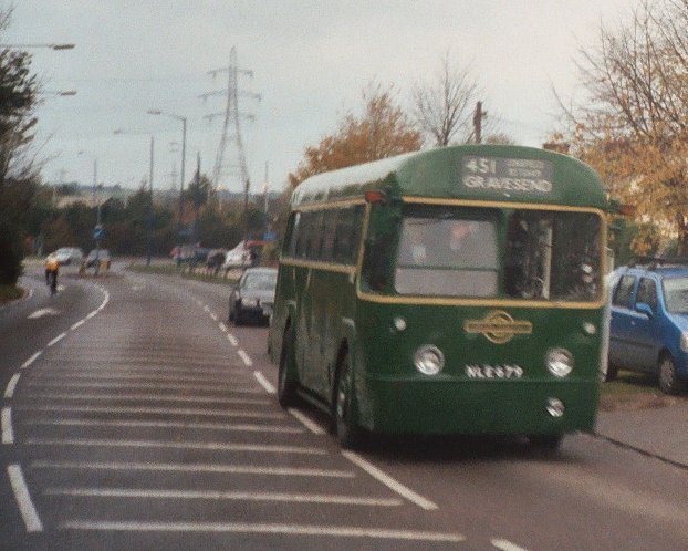 We passed RF679, coming back in on the 451 from Betsham, then left suburban Gravesend, crossing the desolation left by the construction of the Channel Tunnel Railway line and climbing up to the bridge where Southfleet Station used to be. A little further on we turned off along the country lane to Southfleet: from suburbia to construction blight to traditional North Downs countryside in a couple of minutes.