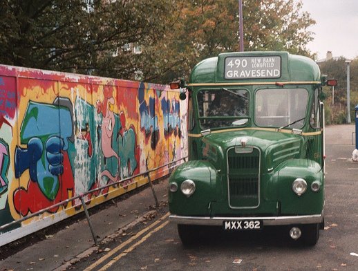 Back at Parrock Street I watched the petrol-engined Jersey Titan purr out of the carpark. With the crowds still not abating, it was decided to run an extra on the 487 circuit, using RT3148. The bus was driven out to the stand - with me aboard - before the crew had returned from their PNBs. The crew arrived, and with a full bus we set off for Northfleet.