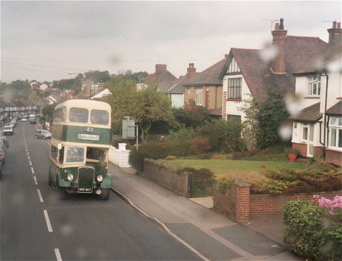 From Gravesend Station we headed south on the Meopham road, before turning left to wiggle through to reach the Singlewell road. We passed the service bus (RT2043 I think), and headed south, climbing up away from the Thames. Eventually we reached the southerly limit of Gravesend: the A2. We headed along the edge of Singlewell estate, parallel to the dual carriageway, to reach the 487 terminus. This involved a conductor-signalled reverse round a corner, so we all had to alight and cross to the pick-up stop. Or walk along to observe the turn, of course!