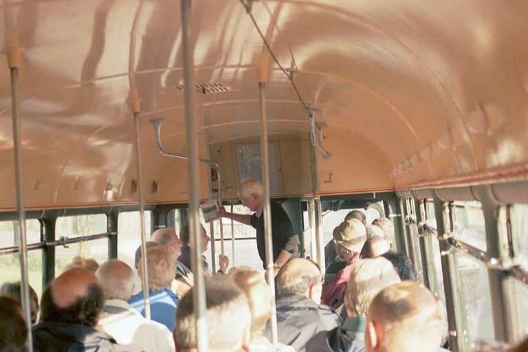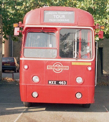 I walked down the row of parked buses to see what was here. There was a short row of red buses: Central Area RF383 was making a visit, in its 227 dress, next to Pete Simmonds' ex-Brixton RM642. On the other side of a large turquoise and champagne-liveried box was RF486, which had arrived in service, as a "London Transport Tour from Dorking" in the best Country Area tradition.