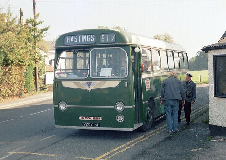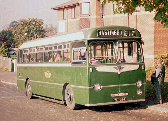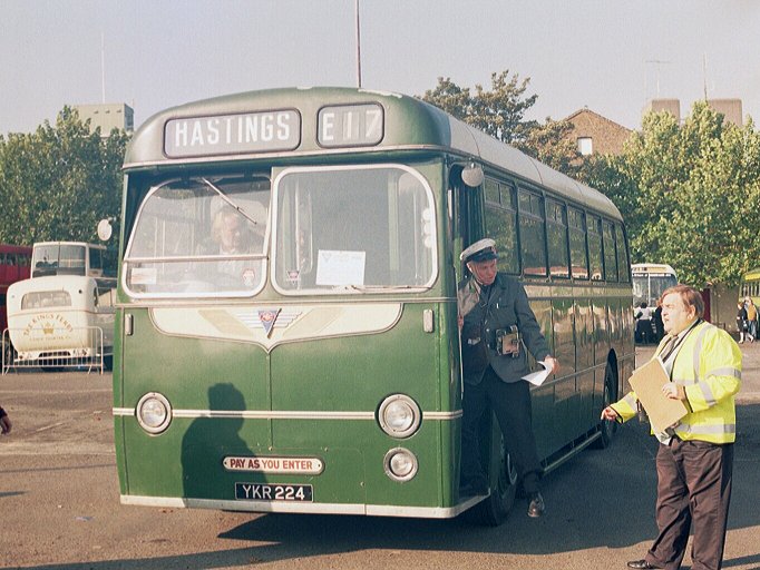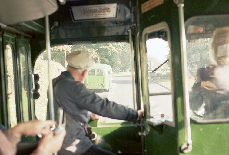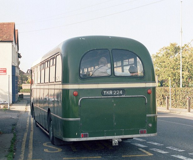 We turned in the station approach and pulled up behind Hants & Dorset 779, a very smart Bristol LLG6 coach with rear-entrance Portsmouth Aviation body. Everybody piled out, took photos and picked up conkers.