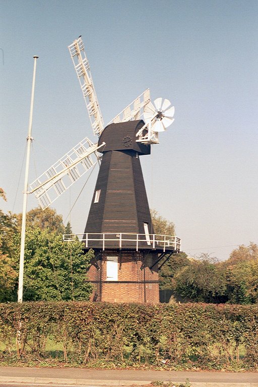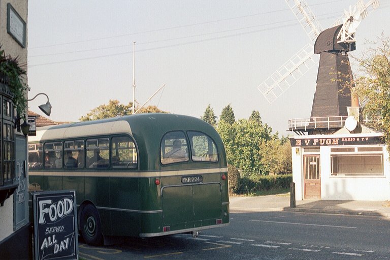 We drew up at the bus-stop on the corner opposite Meopham Green windmill, and went to take a quick set of pictures. The crew got out and went to inspect the water level in the cooling system after the hard climb. It needed quite a lot!