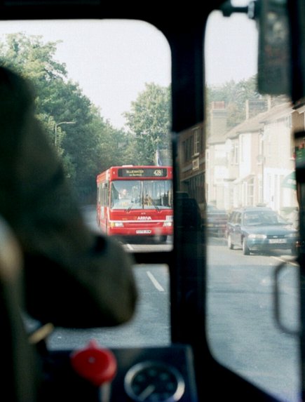 We trundled on. I wondered just how much of the Greenline network had been over 30mph restricted roads. Most of it, I presume. The RCL just purred along, the AEC engine so soft-sounding compared to the stridency of modern replacements in RMLs. The stop outside Northfleet Garage was blocked, so we made a photo stop rather further along, before descending to Swanscombe. We went on, across the Swanscombe gap, and up and down through Horns Cross to the outskirts of Dartford. We met other buses on the way: GS15 scurrying back towards Gravesend, red Arriva Dart 3279 on TfL route 428 to Bluewater and a Scania/Wright on the 480.