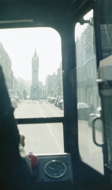 We descended into, um, Dartford. A peculiar kind of traffic hell. But we negotiated our way through to stop at the traditional stop outside Dartford Library. The blinds were changed for the return leg.