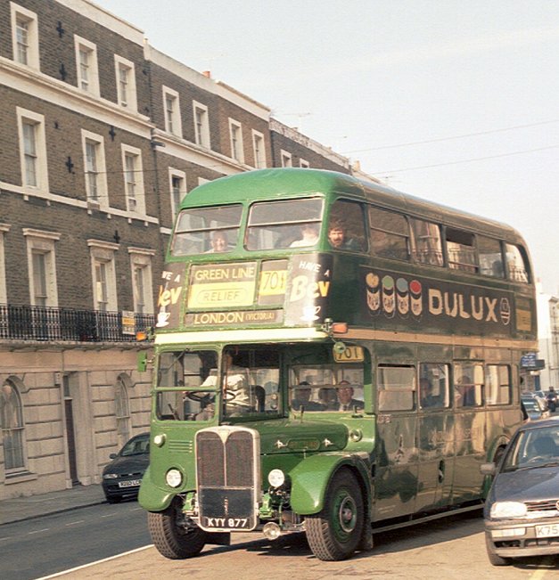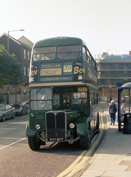 Yes, I HAD just been to Dartford and back on a Greenline double-decker. But that had been my first trip on an RCL, and this would be my first trip on a GreenLine RT. RT3148 was a familiar vehicle, and I know the crew well: Colin Rivers driving and Peter Larkham conducting. But Greenline blinds make a difference! - and this IS the 75th Anniversary year of Greenline. O.K. I admit it, I just WANTED to go on this trip. So did quite a few others, by the loading. Peter filled the RT up to the group's limit for the bus: less than the 56 of yore, but the bus IS now elderly, and people weigh rather more nowadays than in 1949!