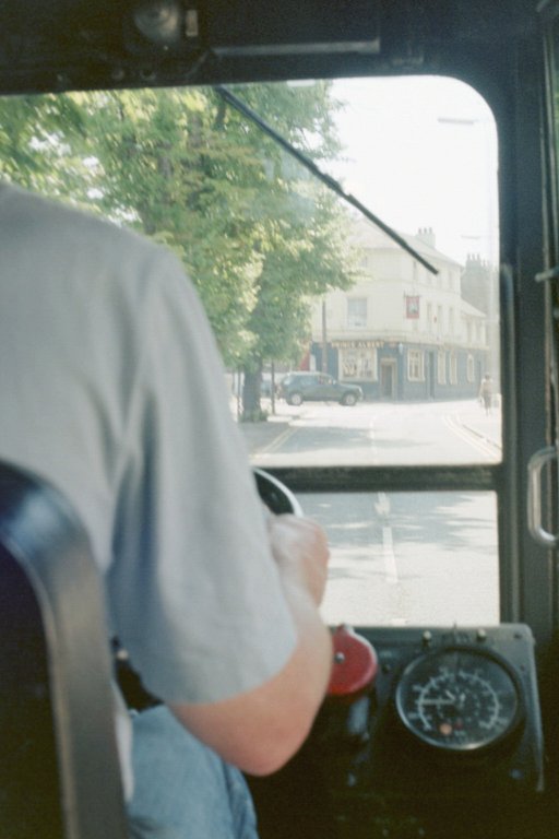 I couldn't fulfill my first duty - to set up the right blinds - because we didn't have any. The Greenline 700 Relief blinds would have to suffice. It was time to go, so I climbed aboard with Steve Wood and off we went. I had to announce the destination to the waiting crowd at the Milton Streeet loading stop, but we took on a good load (mostly upstairs), and off we went.